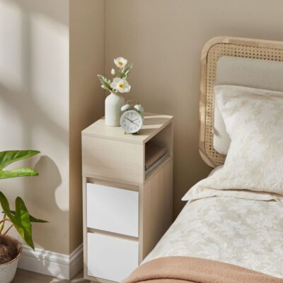 - Nachttisch schmal Beistelltisch mit 2 Schubladen LORIS