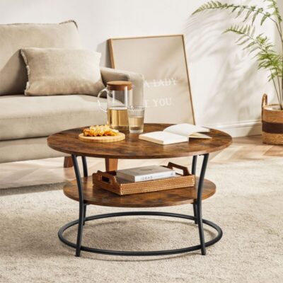- Couchtisch rund Wohnzimmertisch Sofatisch mit Ablage AURON