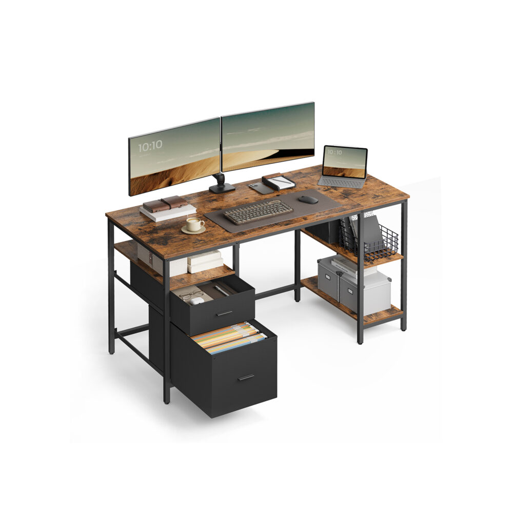 Computertisch Bürotisch Schreibtisch mit 3 Ablagen 2 Schubladen JORIS